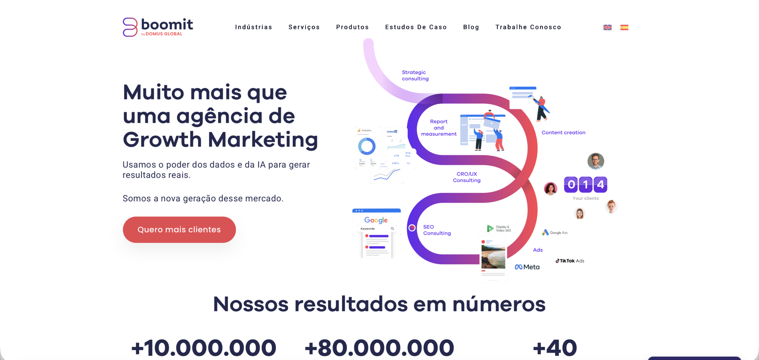 Na Boomit, enxergamos o growth marketing como um sistema completo. Nosso trabalho integra estratégia, performance, conteúdo, dados e tecnologia para escalar negócios de forma sustentável.